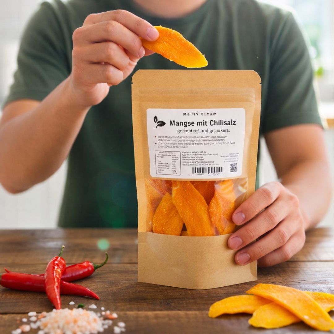 🥭🌶 Sonnengereifte Mango trifft auf feine Chili-Schärfe – ein Snack mit Charakter für alle, die Süßes lieben, aber das gewisse Extra suchen.